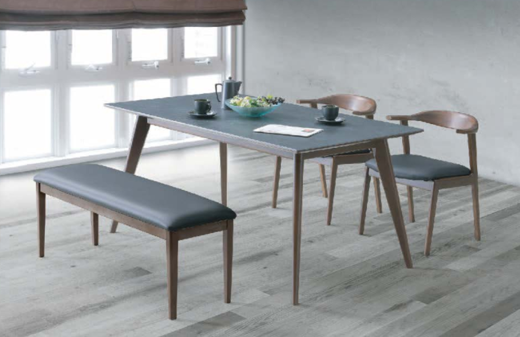 セラミックと天然木を組み合わせたトレンドデザインの食卓セットを期間限定にてご用意しております。