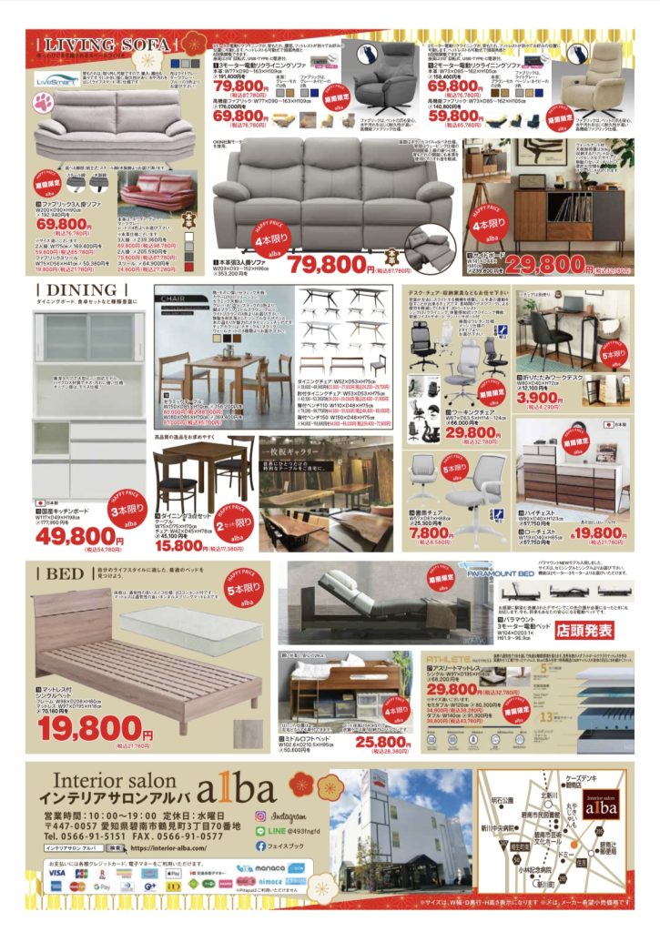 なお、インテリアサロン アルバの新年初売りは、1月3日(土)午前10時より開始いたします。